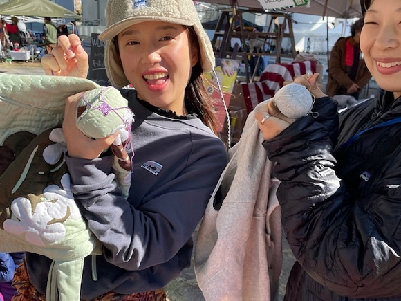 ★企業も、シンプルリペアの「pstagonia」(下写真:シンプルリペアで素敵にリメイク)、リペアインテリアの「NEO VINTAGE」、酒粕バウムクーヘン販売の「小島良太郎商店」、こだわりの古着販売のお店、さらに「中京テレビ放送」のキャラクター着ぐるみ参加もあり、賑わいました。