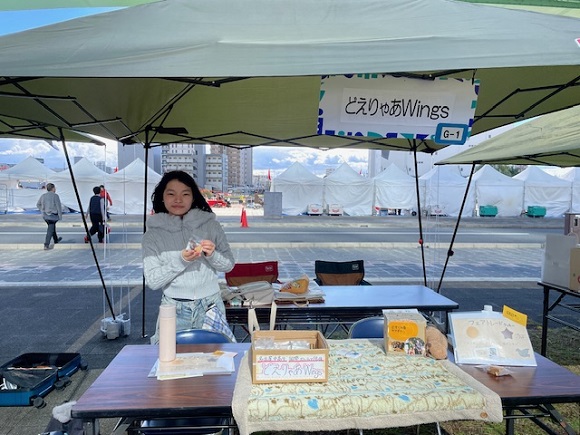 - 「どえりゃあWings」(下写真:ブース、手にココアクッキー)